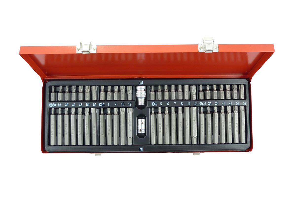 • Sada je určená především pro autoopravárenství, ale využití nalezne i v dalších průmyslových odvětvích, jakož i v hobby dílnách. Bity jsou vyrobeny z vysoce jakostní legované Chrom - Vanadiové oceli s povrchovou úpravou poměděním pro vyšší odolnost vůči korozivním vlivům. V sadě je umístěn i adaptér 3/8" a 1/2" pro použití bitů společně s 3/8" mebo 1/2" ráčnou.