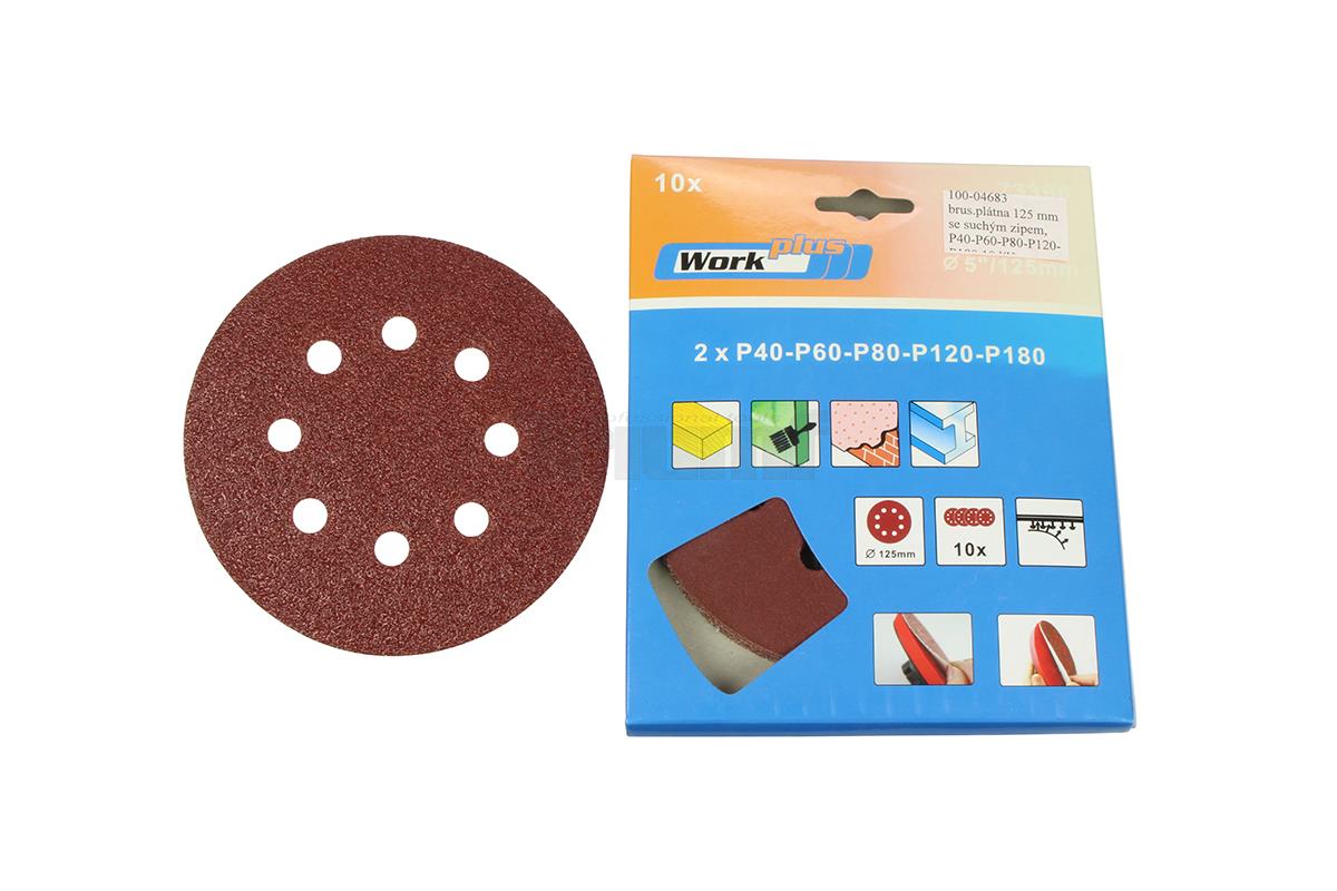 brusná plátna pr. 125 mm se suchým zipem, P40-P60-P80-P120-P180, sada 10 dílů
