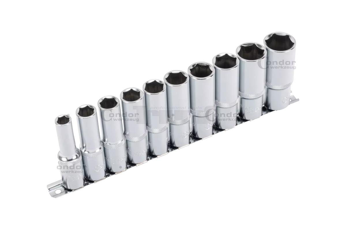 hlavice nástrčné 1/2", 6ti hran 10 - 24 mm, prodloužené, Xcess Performance, sada 10 dílů