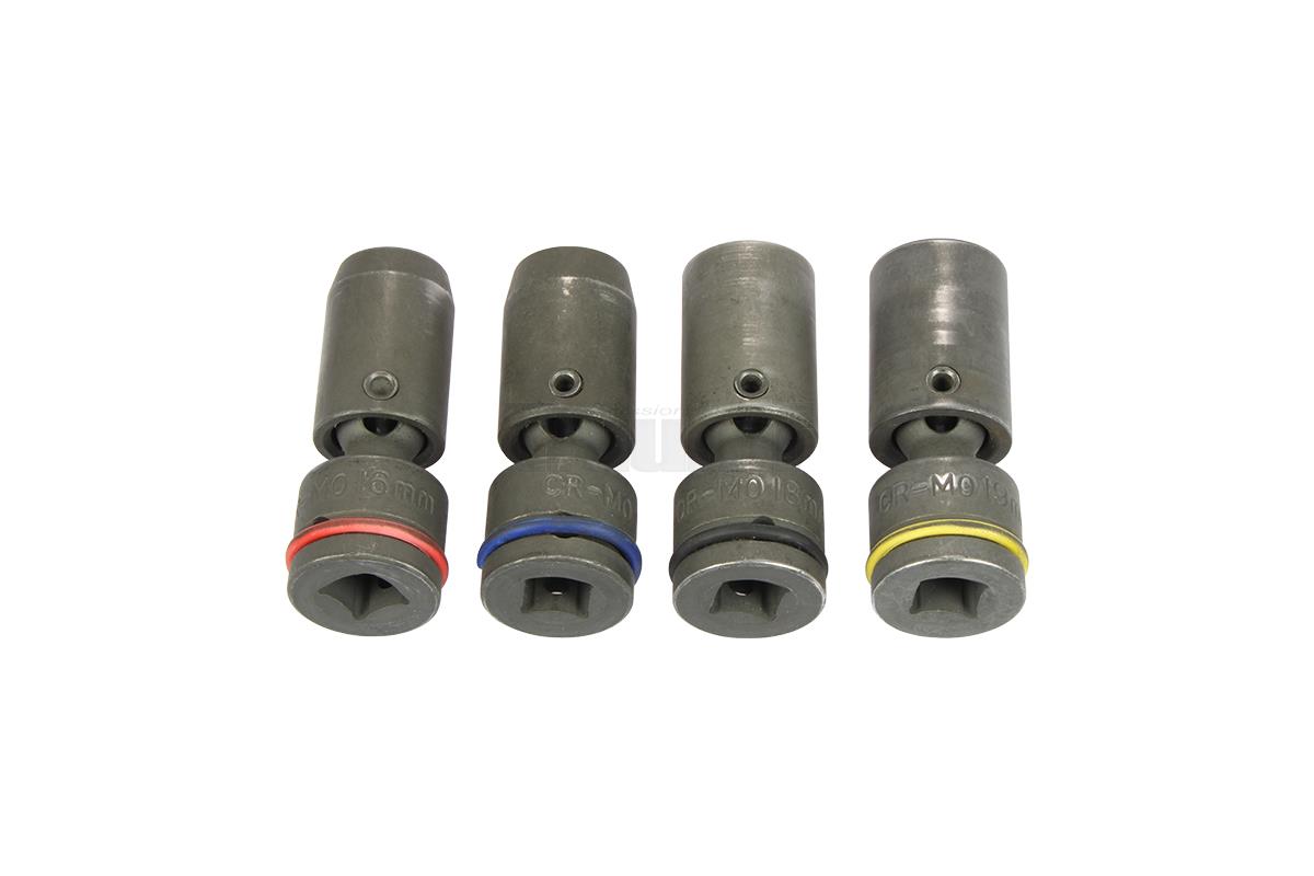 hlavice nástrčné 1/2", 6ti hran 16 - 19 mm, výkyvné, s kulovým kloubem, tvrzené, sada 4 díly