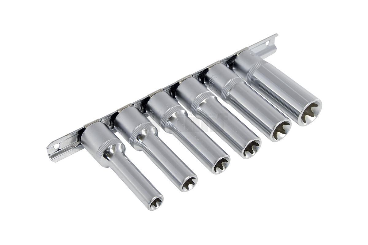 hlavice nástrčné 1/2", E-profil E10 - E20, prodloužené, sada 6 dílů