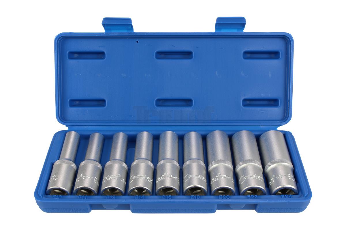 hlavice nástrčné 1/2", E-profil E10 - E24, prodloužené, sada 9 dílů