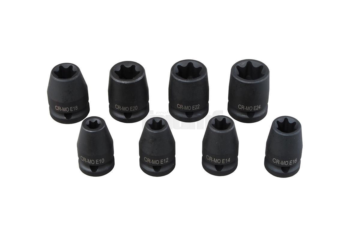 hlavice nástrčné 1/2", E profil E10 - E24, tvrzené, sada 8 dílů