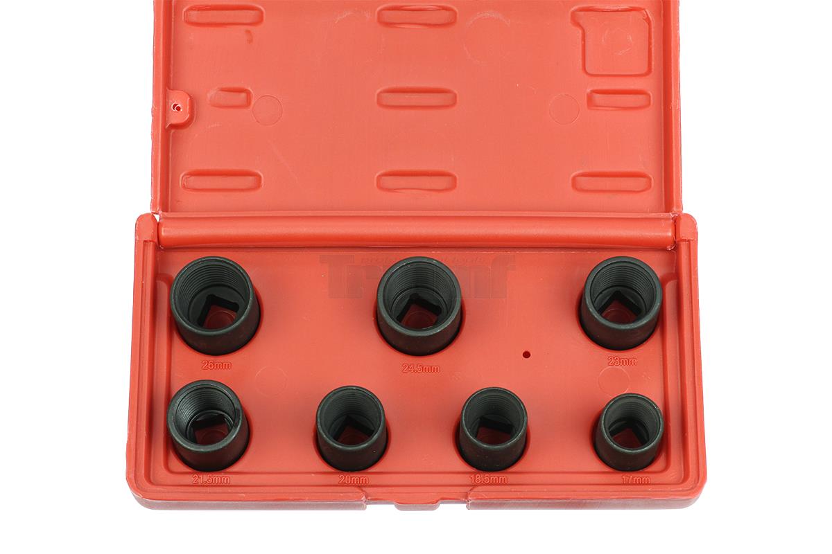 • Kónické 1/2" nástrčné hlaviceNa poškozené šrouby a matice z Chrom - molybdenové oceli7 dílůSada obsahujeHlavice nástrčná 1/2", kónická17 - 18.5 - 20 - 21.5 - 23 - 24.5 - 26 mm