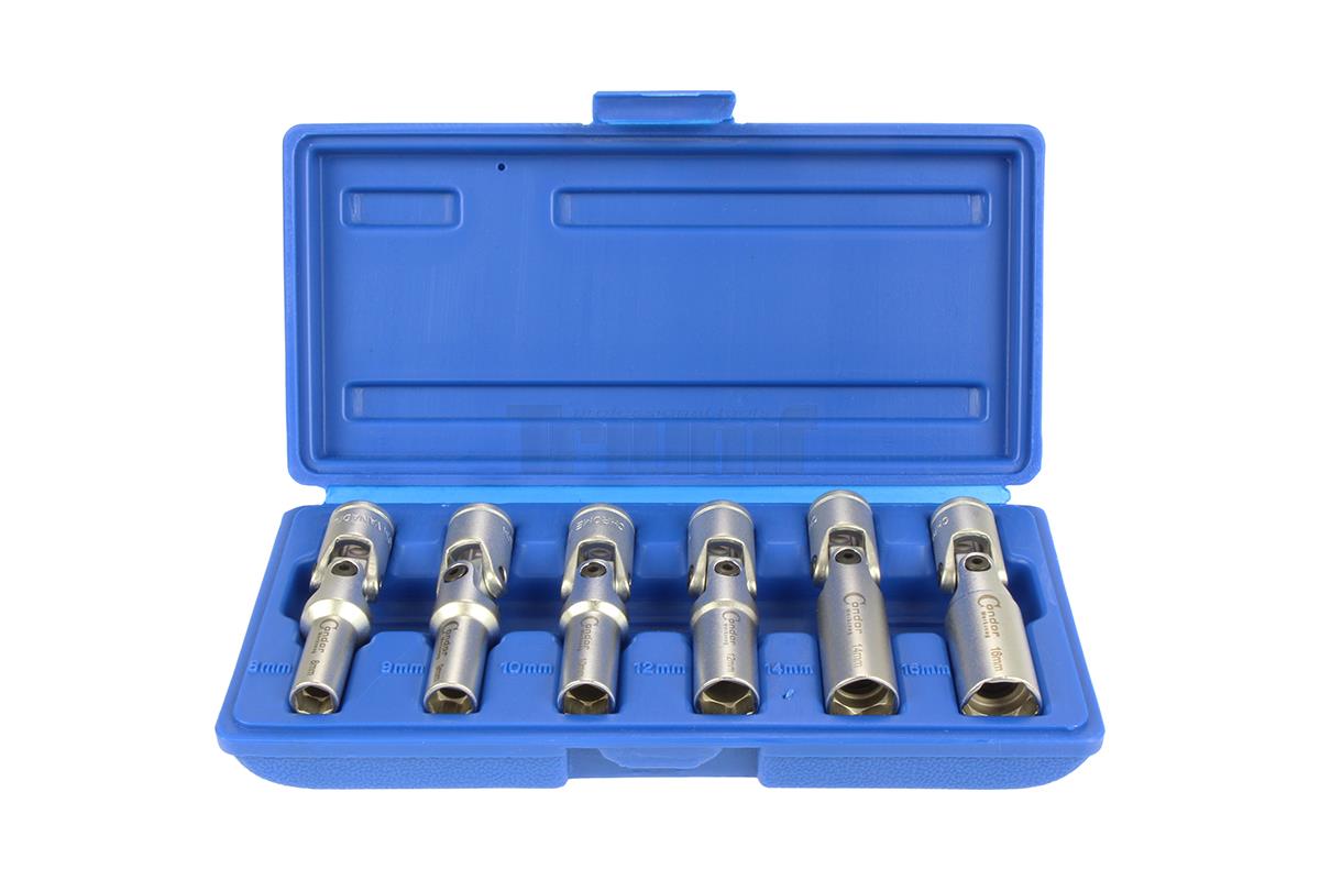 hlavice nástrčné 3/8", 6ti hran 8 - 16 mm, délka 150 mm, výkyvné, sada 6 dílů