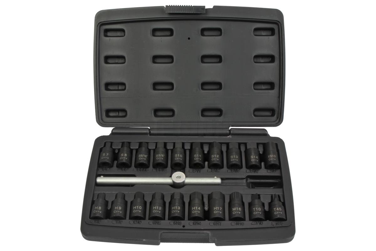 hlavice zástrčné 3/8", na olejové výpustě, tvrzené, sada 21 dílů