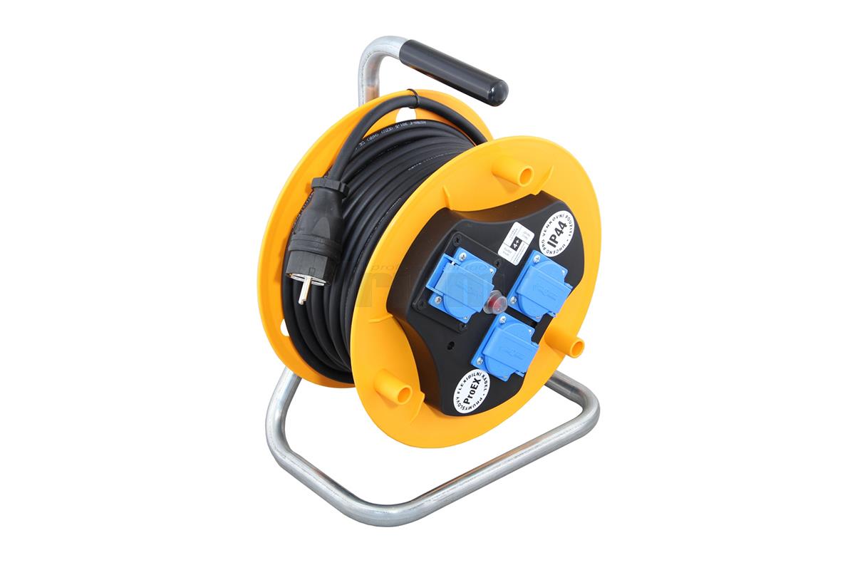 kabel prodlužovací PROFI 40 m, chloropren, 3 zásuvky, na bubnu, H07RN-F3G1,5, 230V, IP44