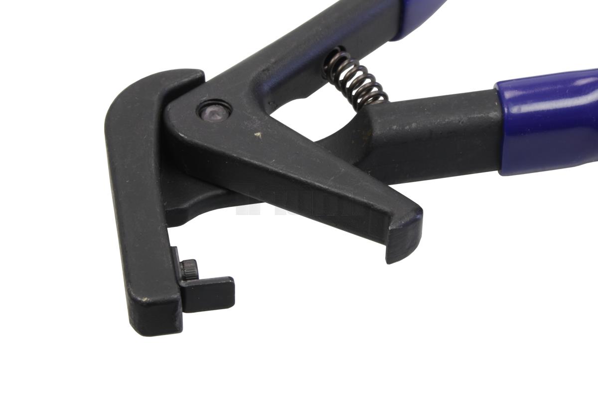 • Speciální kleště na rychlé odstranění lepených závaží z disků kol vyrobených z lehkých slitin. Kleště jsou vyrobeny kováním z Chrom - Vanadiové oceli a zakaleny v oleji, rukojeti jsou opatřeny máčenou PVC rukojetí. Spolehlivě uchopí a odstraní závaží bez poškrábání a vrypů do povrchu hliníkových disků. Kleště jsou určeny pro pneuservisy a autoservisy.