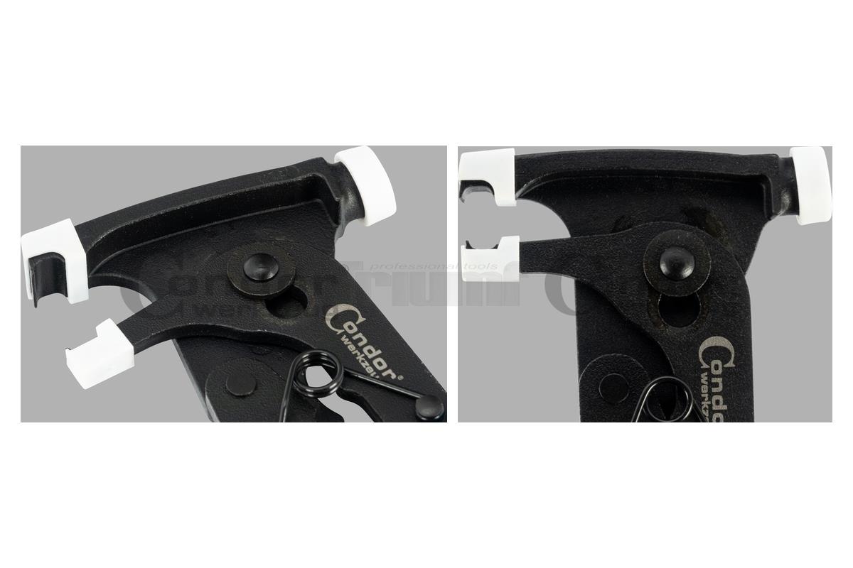 • Kleště pro pneuservis jsou vybaveny kladívkem pro natloukání vyvažovacích závaží na ráfek a s čelistí pro demontáž závaží z ráfku kola.