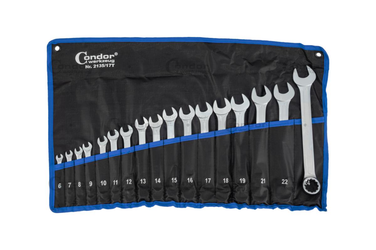 klíče očkoploché 6 - 24 mm, sada 17 dílů, v textilním obalu