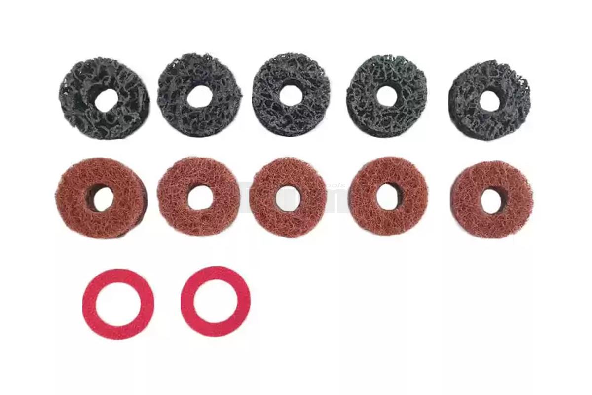 • Náhradní nylonové kotouče jsou speciální čistící a brusné kotouče tvořené porézním materiálem z nylonového vlákna, které je opatřeno abrazivním materiálem. Kotouče mají mnohostranné použití, převážně na čištění dosedacích ploch nábojů od koroze v okolí kolových šroubů. Lze je použít i pro čištění kovů od barvy, lepidla, plastů a gumy, k čištění svárů, otřepů, k odstraňování starých laků atd.