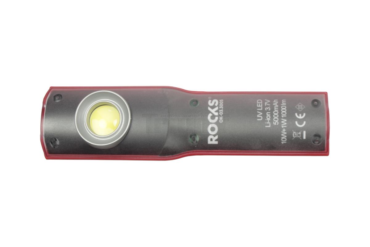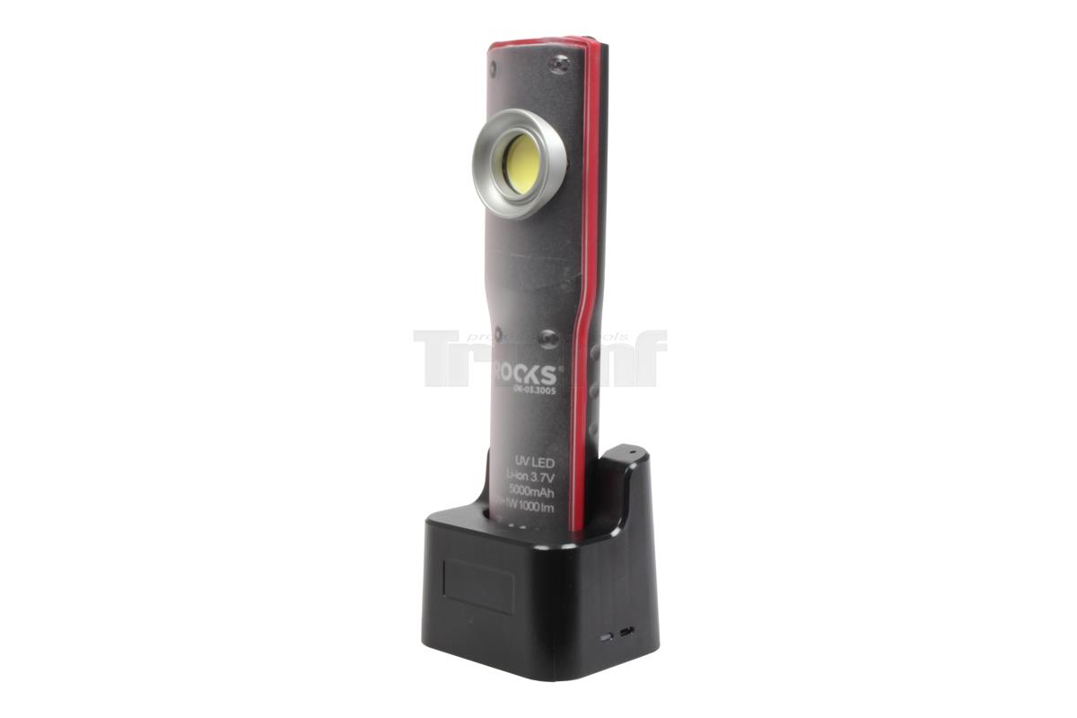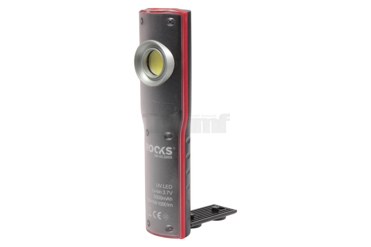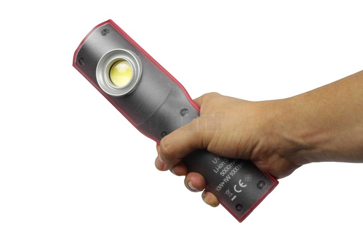 lampa montážní COB LED + 1 UV LED, akumulátorová, 3,7 V / 5000 mAh, IP54, se stojánkem
