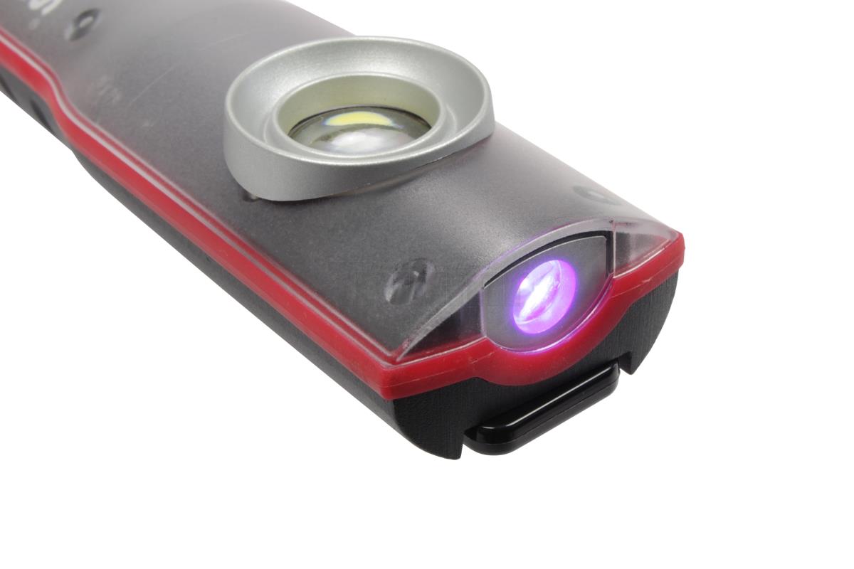 • Montážní akumulátorová lampa s detekční UV LED s výklopným magnetem a závěsným hákem je vhodná na použití v autoopravárenství, průmyslu i domácnosti.