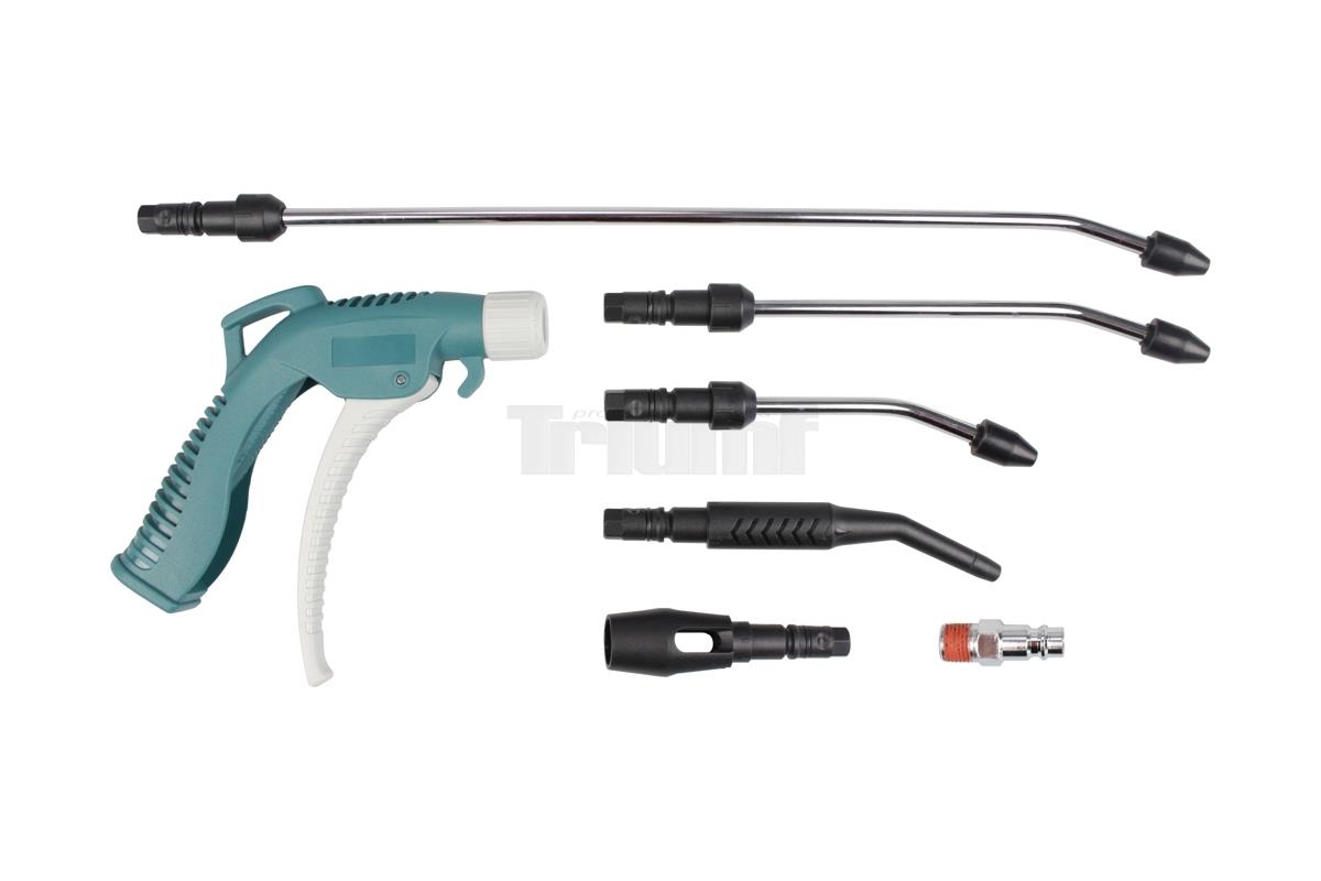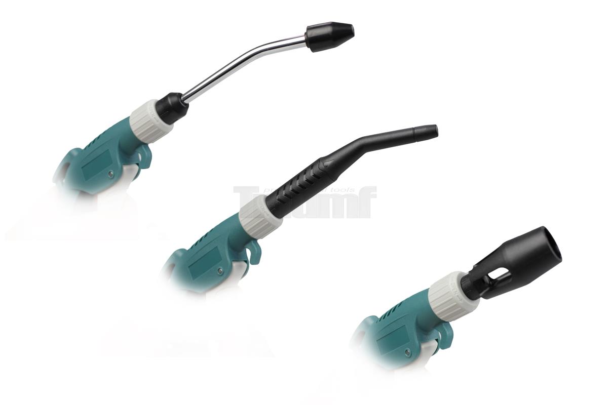 • Ofukovací pistole s rychloupínáním má univerzální použití pro vyfukování nečistot, sušení a čištění povrchů nebo součástí po technickém mytí. Součástí dodávky je 5 samostatných nástavců - trysek pro různé aplikace a pracovní činnosti, ideální pro těžko přístupná místa. Trysky jsou zakončeny 6ti hranem pro úhlové nastavení v rozsahu 360°a to po 60°. Vhodné použití nalezne ve všech průmyslových odvětvích, řemeslných a hobby dílnách.