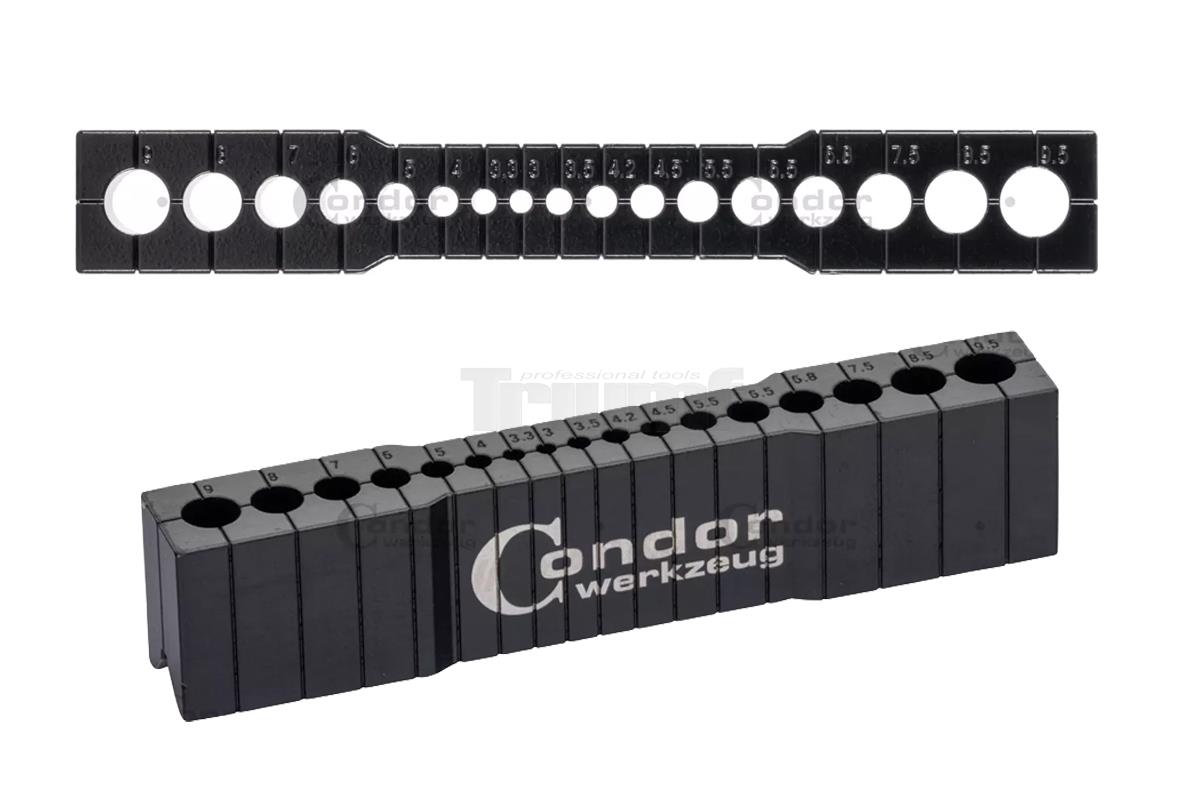 šablona vrtací pro vrtáky průměru 3,0 - 9,5 mm