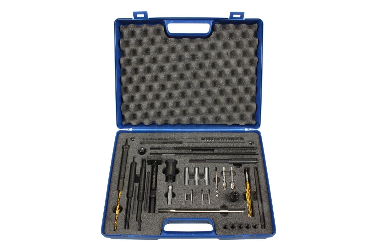 • Sada je určená na demontáž zalomeného žhaviče u motorů Ssang Yong (2,0l 4-válec, 2,7l 5-válec)Pro žhaviče se závitem M10x1. Sada obsahuje frézy, závitníky, pomocné vedení pro přesné vrtání, opravnou sadu na obnovu poškozeného závitu.Sada 33 dílů.