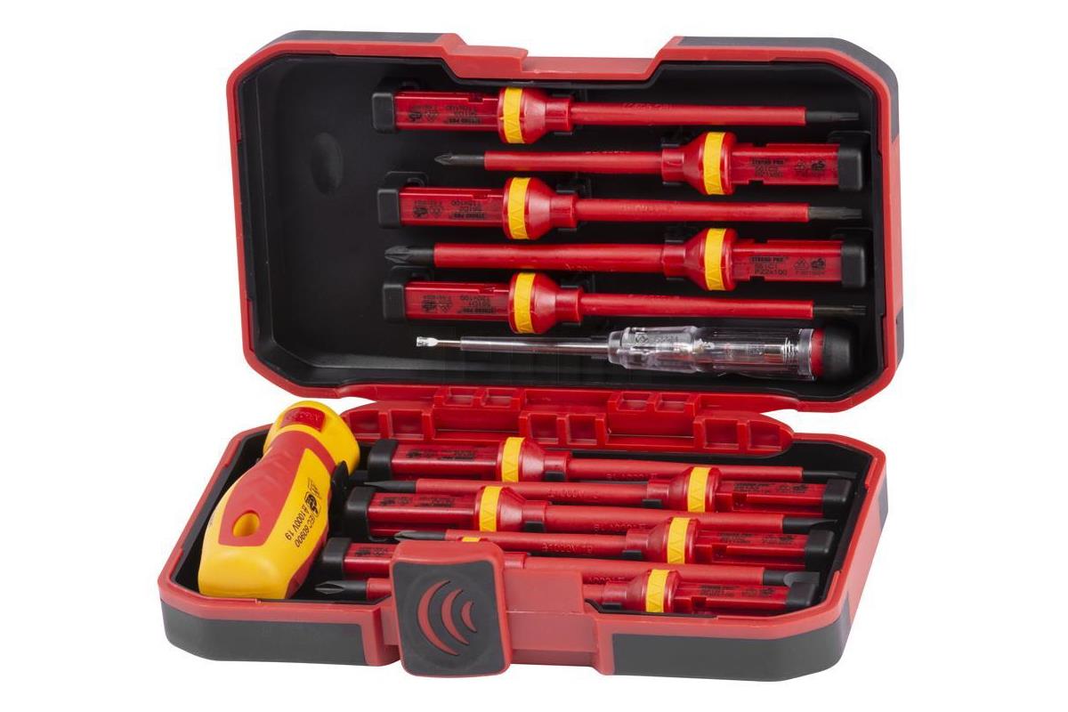 • Šroubovák s výměnnými dříky nalezne uplatnění v elektrotechnickém průmyslu a v řemeslných dílnách při elektroinstalacích pod napětím do 1000V. Dříky šroubováků jsou vyrobeny z jakostní legované Chrom – Vanadiové oceli. Rukojeť je dvoukomponentní. Pro lepší přehlednost a skladovatelnost jsou šroubovací dříky a rukojeť pro výměnné dříky uloženy v plastové krabičce.