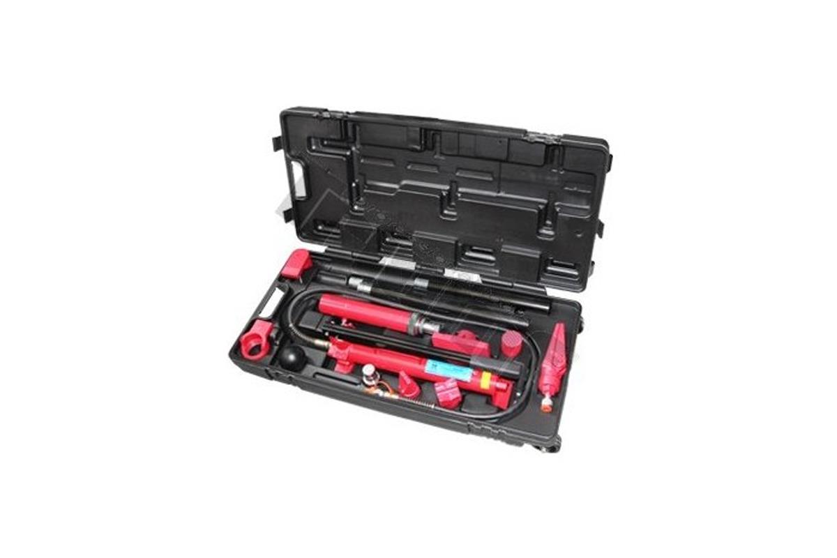 • obsah sady: mechanicko-hydraulická pumpa, píst s tlakem do 10 t, rozpínací klín, prodlužovací nástavce, 7 x opěrných adaptérů