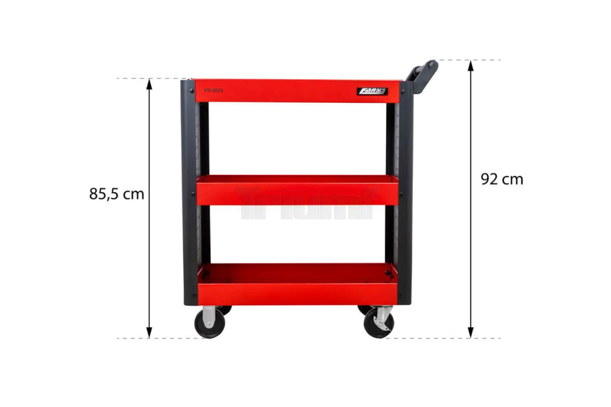 • Dílenský montážní vozík se třemi policemi se skvěle hodí do velkých a malých průmyslových, řemeslných provozů i hobby dílen, a všude tam kde je nutné použít mnoho různého nářadí a různých nástrojů a součástek. Vše potřebné budete mít vždy po ruce. Dílenský vozík se třemi policemi je nejen prostorný, ale lze jej také snadno přepravovat na různá místa. Jeho charakteristickým znakem je stabilní a bezpečná ocelová konstrukce. Jednotlivé police jsou uspořádány tak, aby dostupnost nářadí v jednotlivých patrech bylo pohodlně dostupné a tím i práce byla rychlejší, efektivnější a ekonomičtější.