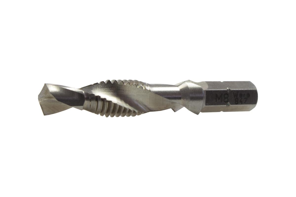 • Jedná se o 6ti hranný bit 1/4“, vyrobený z rychlořezné oceli HSS sloužící současně k vyvrtání otvoru, vyřezání závitu, zahloubení a sražení hrany. Při řezání závitů se doporučuje používat řezný olej, který snižuje tření a zlepšuje obráběcí schopnosti nástroje, a tím i prodlužuje jeho životnost.