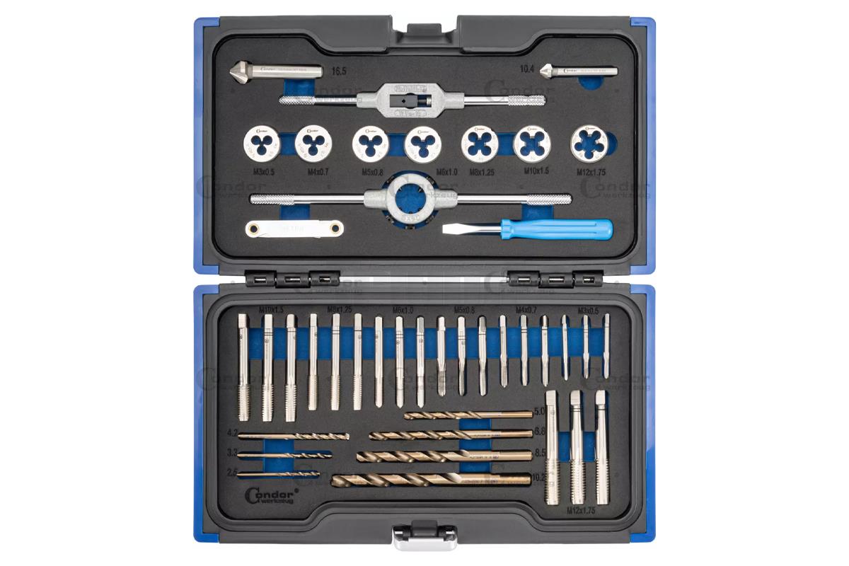 závitníky sadové M3 - M12, vrtáky broušené 2,5 - 10,2 mm, HSS-Co.5%, sada 41 dílů