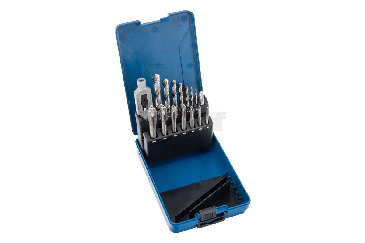 závitníky strojní M3 - M12, vrtáky broušené 2,5 - 10,2 mm, HSS, sada 15 dílů